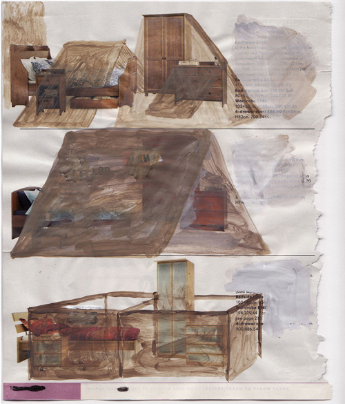 Watercolour, acrylic ink and correction fluid on Magazine page