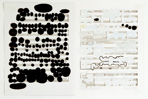 Acrylic ink, ink, coloured pencil and correction fluid on sheet music
