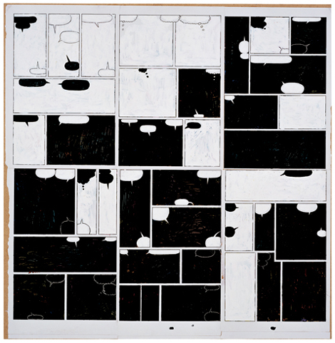 acrylic ink on comic pages on wood panel